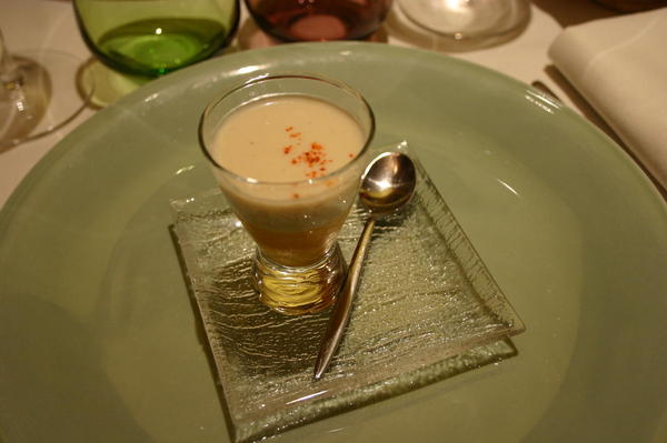 這一道「香菇餃子奶湯」並沒有出現在菜單上,我們也沒有點,純粹是運氣好,主廚要找東方人試口味的,可能下個月就會進入正式菜單;目前則仍權作為petit chef與其同事的員工餐,真是令人欽羨的工作啊。