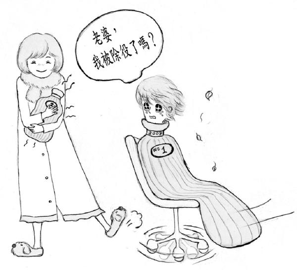 原本只是念著懷舊而買下它,但後來我每天想到就抱著它,當然它不再是個冰枕,而是個灌滿熱水的暖枕。以前鑽進冰冰的被窩時,總會「吆喝」Joe這個生物性暖爐前來,才能安穩入睡;現在,他終於不需要自己來暖被,只要派出他的「細漢仔」就可以了。