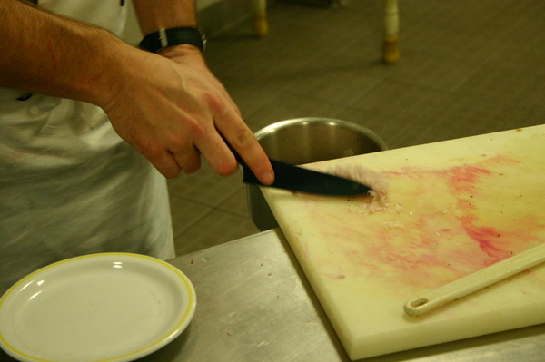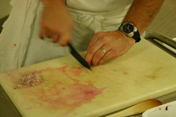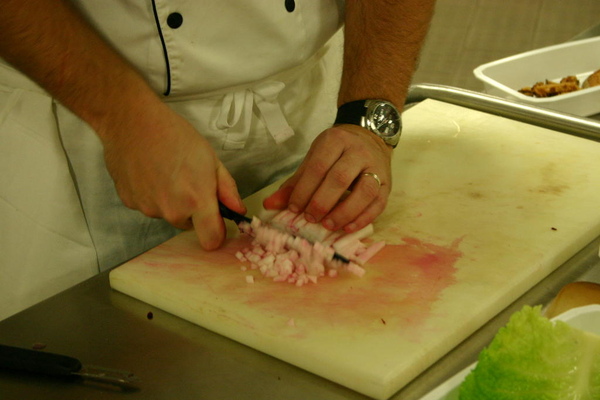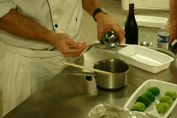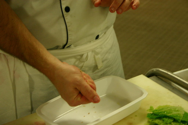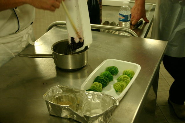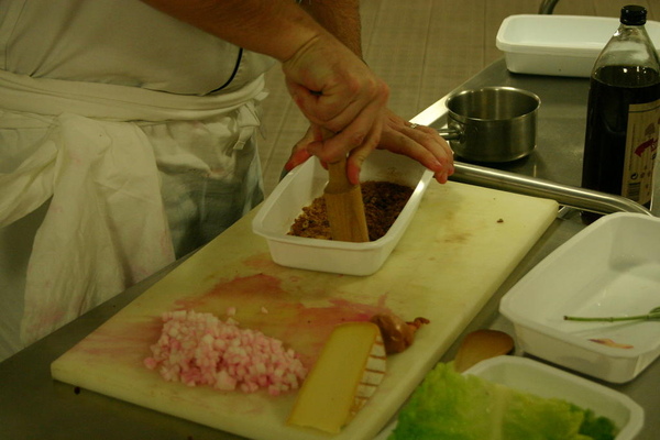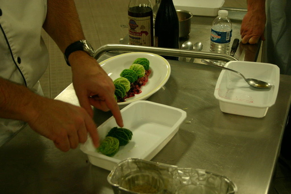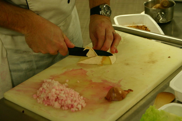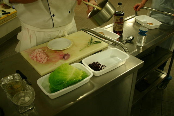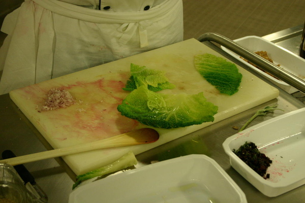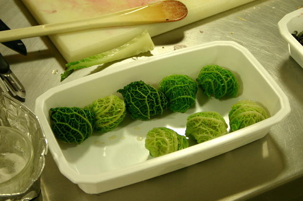 這裏介紹一道法國前菜的做法,原名是「Choux verts farcis au St Nectaire et Poilane, Macédoine de légumes de saison」,這裏我稱之為「起司獅子頭加蔬菜丁」,下面將以一張張相片呈現各關鍵點,讓廚藝白痴如我者,皆可跟循法國廚師的動作,一步步將之製作出來。