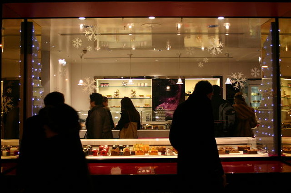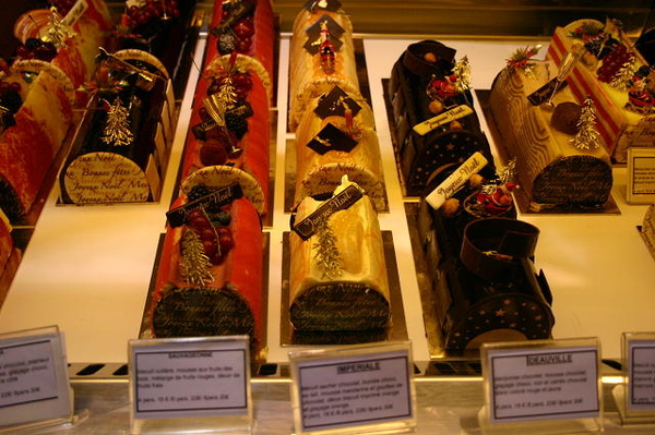 首先吸引住我的,是一家街角甜食店,耶誕節的應景食品:「樹幹蛋糕」已經上場了。