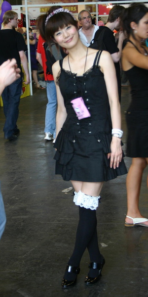 可想而知,來此地的法國人大半是「日本控」,現場的日本人於是奇貨可居,這位日本蘿莉原本是遠渡重洋來顧攤位的,但不斷地被要求出來拍照。
