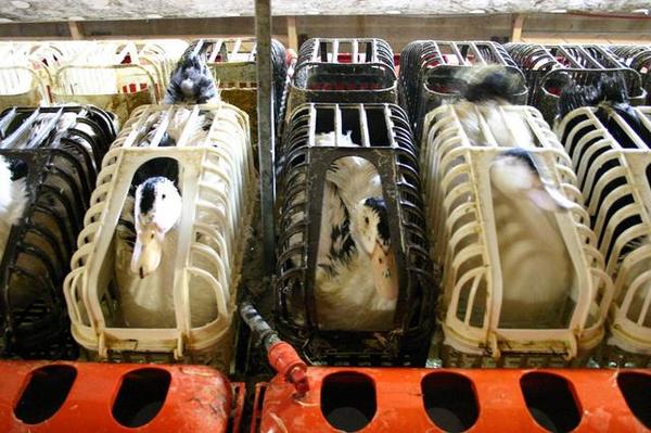 先去參觀關在裏面的鴨子與灌食器,心裏覺得很不忍,