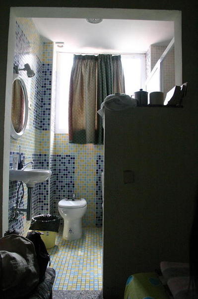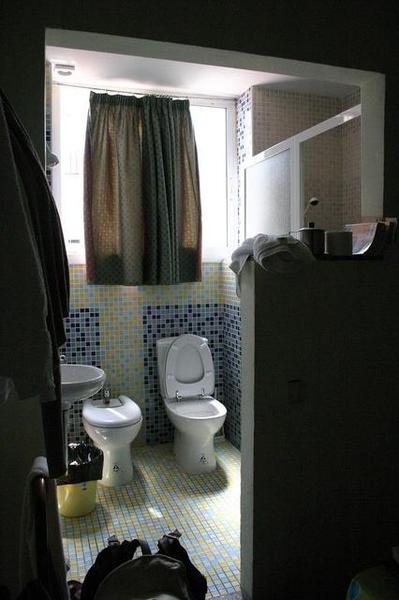 我們選了Jenny在1998年住過的房間(也許吧,這幾間套房都長得一樣),讓她得以重溫舊夢,只是此次是二個人住,我們把二個行李箱打間,就發現房間再也沒有剩餘的位置可以走人了,真的迷你得可以,而且廁所沒有門。
