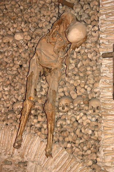 葡萄牙最令人毛骨聳然的地方,非Evora鎮聖芳濟教派的「人骨禮拜堂(Capela dos Ossos)」莫屬。禮拜堂入口橫樑上,還熱情地寫著:「我們的骨頭在這裏等著您們的骨頭。(Nos ossos que aqui estamos, pelos vossos esperamos.)」。