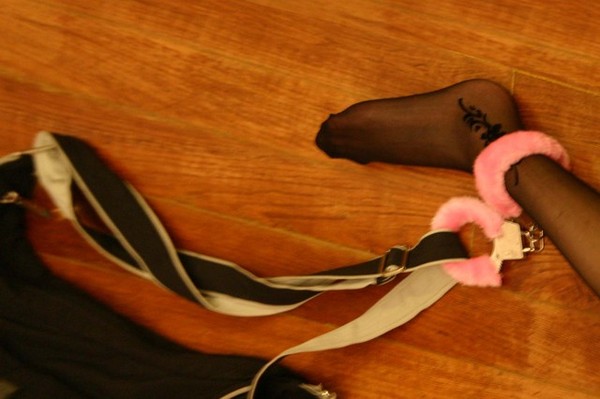 但對我太貴了,我還是把腦筋動到朋友送的結婚紀念日禮物:以粉紅色毛毛所包裹的手銬,我決定把它拿來真正使用,必要時,就用它把我的包包與身體部位銬起來。