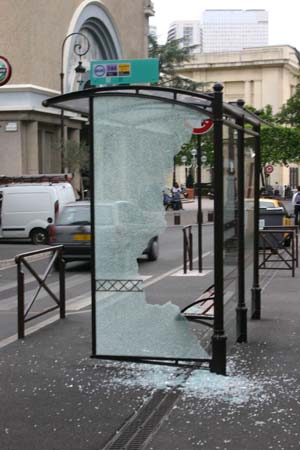 我則是在隔天醒來,才發現上學路上的公車亭被打破了,沒關係,披頭市很有錢的。後來才知道法國有幾場衝突,幾百輛車子被燒,不過也沒關係,那些車子應該都有保險的。